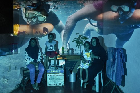 Come sarà l’atlante su cui studieranno le future generazioni? A causa dei cambiamenti climatici, alcune delle trasformazioni più radicali sulla mappa del mondo saranno visibili solo tra qualche decennio. Come può una fotografia mostrare il futuro? Da queste domande, nel 2019, è nata l’idea del progetto “Atlas of the New World”. Seguendo i dati scientifici sulle possibili alterazioni del paesaggio dovute ai cambiamenti climatici, siamo andati a fotografare quello che sarà lo scenario in cui vivranno le persone alla fine del secolo. La fotografia è un mezzo che di solito ritrae il presente. Noi abbiamo cercato di mostrare il futuro di alcuni luoghi del mondo che subiranno uno sconvolgimento morfologico. Per ogni luogo visitato, abbiamo cercato immagini del paesaggio che potessero rappresentare questi cambiamenti. Queste sono state poi inserite in un proiettore flash, sincronizzato con la nostra macchina fotografica. Con questa tecnica, al momento dello scatto, la macchina fotografica registra la scena reale, con le persone ritratte, su cui si sovrappone l’immagine dei paesaggi del futuro. In questo modo il cambiamento climatico che stiamo affrontando viene percepito direttamente e visibilmente nel presente. Il risultato sono fotografie complesse e oniriche che diventano una proiezione metaforica di un futuro non troppo lontano.