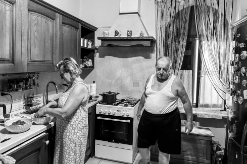 Nel panorama contemporaneo della fotografia documentaria, spesso dominato da racconti fotografici sensazionalistici e da estetiche costruite, il lavoro di Antonino Fermani si distingue per sobrietà e profondità emotiva. In quasi vent’anni di progetto, l’autore ha seguito da vicino la vita di una coppia, ritraendone l’intimità con uno sguardo partecipe ma mai invasivo. Il suo progetto “In salute e in malattia” è una narrazione visiva che attraversa il tempo e restituisce, con delicata intensità, la quotidianità di un legame che resiste, muta e si rafforza. Il progetto presentato al 16° Premio “Portfolio Lodi”, ultima Tappa dell’edizione 2025 di “Portfolio Italia”, si è classificato al secondo posto. La sequenza di dodici immagini in bianco e nero, realizzate tra il 2005 e il 2023, si presenta come un diario silenzioso. Nel reportage apprezziamo come Fermani osserva e documenta senza alterare: la sua è una fotografia che si nutre di fiducia e prossimità, dove il gesto minimo, uno sguardo, una carezza, la preparazione di un pasto, diventa segno di una complicità profonda, consolidata dal tempo e dalla vita vissuta. La scelta del bianco e nero non è stilistica ma narrativa: priva il tempo di coordinate esteriori, lasciando emergere l’essenziale. Le immagini evocano per sobrietà e densità emotiva lo stile di alcuni autori straordinari del Novecento, di fatti in esso emergono la delicatezza poetica di Werner Bischof, l’attenzione per l’umano quotidiano di David Seymour (Chim), e la compostezza quasi meditativa di Herbert List. Tutto ciò fa pensare alla profonda cultura fotografica dell’autore che in punta di piedi e con tanta modestia, così come quando presenta il suo progetto ai lettori, cerca di trasmettere le emozioni che prova quando pone il suo occhio dietro all’oculare della macchina fotografica. Negli anni, oltre a cambiare il volto dei soggetti, cambia anche lo stile fotografico di Antonino, che passa da una fotografia istintiva ad una fotografia raffinata e ragionata. Ad ogni modo, quello che non cambia è la necessità di preferire la persistenza all’eccezione: l’autore non racconta un evento, ma una presenza. Le immagini si fanno testimoni di un patto affettivo tra due individui che attraversa le stanze, i corpi e le stagioni della vita. “In salute e in malattia” è più di un reportage: è un atto d’amore silenzioso verso chi ha scelto di restare, ogni giorno, uno accanto all’altro. Una meditazione visiva sul tempo, sull’intimità e sulla forza invisibile dei legami che resistono.