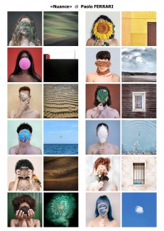 I dittici di “Nuance”, dallo stile perfettamente curato, afferrano e confermano un’essenzialità espressiva che comunica efficacemente per sineddochi, metonimie, metafore e ossimori. Lo schema segue una logica ben precisa: un ritratto sapientemente camuffato, a sinistra; un elemento paesaggistico o urbano finemente ricercato, a destra. Dalla coppia di immagini ne scaturisce mentalmente una terza. Quella sintesi visuale che capta significati indefiniti, allusivi. Sfumati, appunto. E così la dorata vitalità di un girasole si smorza nel rigoroso prospetto di un’abitazione con la sua porta inaccessibile: voglia di fare e paura di sbagliare si esprimono nella precarietà di un gioco delle parti che guarda a un futuro imperscrutabile. Un allettante mappamondo si proietta in un inverosimile pallone sospeso in mare aperto: desiderio di esplorare il mondo e consapevolezza della complessità che quest’intento porta con sé si traducono in viaggi ideali ma non certo impossibili. O ancora, la rigogliosità di una foglia verde si contrappone all’inquadratura finestrata di un albero spoglio: la condizione della giovinezza, di cui la primavera è chiara metafora, porta in sé, come l’immagine dello yin-yang cinese, il pensiero e anche la previsione della stagione autunnale avvenire, metafora questa volta dell’età senile. Di questa fantasmagoria di realtà, delle sue svariate visioni tonali e dei suoi echi – caldi e/o freddi, tenui e/o intensi, opachi e/luminosi – le fotografie di Ferrari si fanno portavoce.