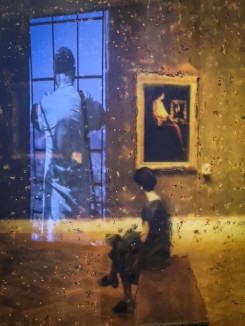 Annamaria Mantovani fotografa si spinge oltre la lettura dell’opera e spontaneamente avvia un processo creativo che intreccia il significante dell’opera con le nuove presenze immateriali che i riflessi, provenienti dagli spazi espositivi, portano nella sua fotocamera. È così che la fotografia diventa uno strumento potente per dare libera espressione a quel pensiero laterale, motore della creatività soggettiva, che, fortemente ispirato dalle immagini dell’arte, spinge il fotografo alla visione di nuove sorprendenti relazioni di senso tra l’opera stessa e gli spazi espositivi, deserti o animati che siano. Nelle fotografie notiamo che l’opera esposta può toccare l’animo dell’autrice con la sua totalità o con una parte di essa, mentre i riflessi del vetro protettivo del quadro offrono accostamenti improbabili che la sorprendono, fino a portarla al piacere di uno scatto.