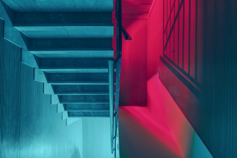 Lo spazio narrativo è esclusivo: un silenzio assordante, dove il pensiero non può fermarsi neppure un istante, e la solitudine è l’unica compagna di viaggio. Due soli colori dominano la superficie fotografica: il bianco, come vuoto o sospensione, il rosso, come dolore, e il blu, come morte.