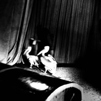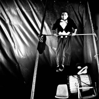 Chapiteau significa tendone. Quello di Teresa Visceglia allude allo show circense, ne diventa un segno che compare in ogni immagine fotografica, come sineddoche dello spettacolo. Il tendone da circo può essere interpretato anche come una sorta di cornice. Esso è un sipario che conduce al non-luogo della magia e della spettacolarizzazione, ma i cui drappi grevi ci ricordano che ciò che stiamo guardando è solo un’illusione. Quindi lo spettatore si trova in una sottile linea di demarcazione tra realtà e irrealtà, razionale e irrazionale. Teresa Visceglia cattura tramite il suo occhio fotografico un mondo arcaico, composto da eroi tragici, che ricordano per fisionomia e costume personaggi folli, emarginati, al di fuori dell’ordinario, il cui compito è quello di suscitare maraviglia, attrazione, allontanare l’uomo dalla logica per condurlo verso l’irrazionale, l’effimero e la tragicità dell’esistenza. Questi ingredienti conducono inevitabilmente verso le strade dell’immaginario dei saltimbanco di Picasso, dei clown di Fellini , degli arlecchini di Paolo Ventura. L’autrice esplora attraverso il suo lavoro questo topos., anche grazie alla creazione di atmosfere crepuscolari utilizzando alternanze tra luci e ombre e tra bianco e nero, che evocano un territorio dionisiaco, dominato dall’erotismo e dall’assurdo. La particolarità del lavoro dell’autrice è determinata proprio dal suo occhio-fotografico. Rappresenta i circensi colti in azioni di scena, nel backstage, in pause. Essi vengono smembrati, diventano frammentati di dettagli, l’immagine non si arresta neanche di fronte al movimento. Ciò che viene rappresentato non è più lo spettacolo circense ma la sua percezione, la sua esperienza. L’ occhio dell’autrice diventa il suo stream of consciousness ,dove l’attimo fuggente, l’immediatezza dell’istante si ripetono ininterrottamente. Teresa diventa così regista dell’evocazione di una catarsi visiva, generando un’immagine assolutamente liquida che è sia emozione che allucinazione e che perde il suo interesse per la sua riproduzione della realtà. Seducente, folle, macabro, il circo di Teresa Visceglia diviene anche una forma di libertà da ogni tipo di oppressione.