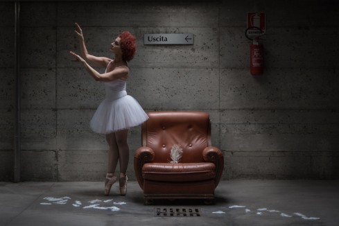 Una poltrona rossa, un lucernario e un cartello che recita la direzione di uscita sono gli elementi fondamentali della griglia concettuale che si ripete in ogni situazione e che rimane l’unico elemento immutato rispetto ai protagonisti, costituendo un vero e proprio palcoscenico dove emerge una moltitudine di significati e un microcosmo fluido ed eterogeneo di personaggi. Il luogo è fondamentale perché seppur rimanda a elementi reali, questi assumono un significato simbolico. Inoltre essi conducono lo spettatore in un mondo onirico, magico, sono posti in una linea di confine verso il mondo delle idee. Come in un set teatrale i personaggi interpretano una parte del loro vissuto, ovvero l’avvento di un cambiamento, il meccanismo che ha rotto la stasi, i sogni, gli eventi spiacevoli nel corso della loro vita. Inevitabilmente il concetto di uscita si incontra con quello di metamorfosi e con quello di temporalità. A questi due aspetti l’autrice unisce un’umanità complessa ma positiva, vivace, sempre in grado di reinventarsi, riadattarsi anche davanti a situazioni complesse, dolorose. Un esempio è sicuramente l’uscita da un trauma che sicuramente ha a che fare con la necessità di tornare a sognare, a vivere.
