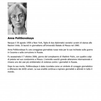 Questo lavoro non si configura come una serie fotografica tradizionale. La fotografia è certamente presente, ma rappresenta solo uno degli strumenti utilizzati. Reggiani recupera dal web i ritratti dei giornalisti uccisi per il loro impegno etico e civile, incollandoli su un fondo di frammenti di quotidiani e riviste in cirillico. È in questo dialogo, spesso aspro e talvolta contraddittorio tra immagine, parola e materia, che l’opera prende forma.